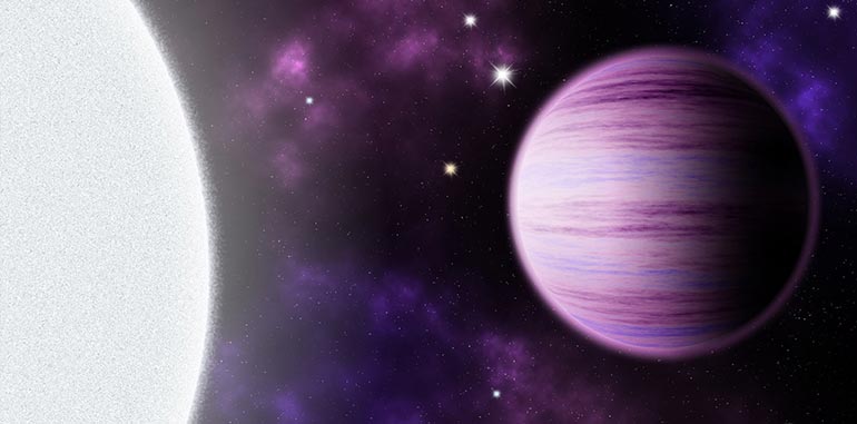 An artist's impression of the exoplanet KELT-9b, which orbits so close to its host star that the star's disk appears 70 times larger than our sun in the sky.