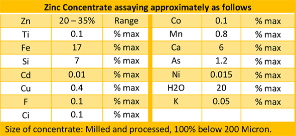 NGN offers zinc concentrate with a majority zinc base component. Preparation of zinc concentrate typically involves the removal of water from an zinc solution.